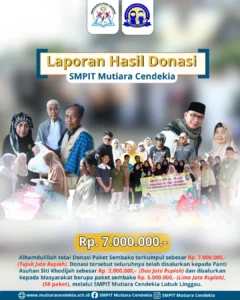 Laporan Hasil Donasi SDIT MC Alhamdulillah, donasi yang telah terkumpul dari keluarga besar MC telah disalurkan kepada yang membutuhkan. Terima kasih atas kepedulian dan keikhlasan